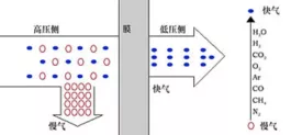 核心原理:利用氧气和氮气在特定高分子聚合物膜(如聚砜、聚酰亚胺、硅橡胶复合膜等)中溶解度和扩散速率的差异(氧气通常具有更高的渗透速率)。当压缩空气流经中空纤维膜或平板膜组件的表面时,渗透速率高的氧气(O₂)、水汽(H₂O)和二氧化碳(CO₂)优先透过膜壁进入渗透侧(低压侧)作为产品气,而渗透速率慢的氮气(N₂)和氩气(Ar)则滞留在非渗透侧(高压侧)成为尾气。