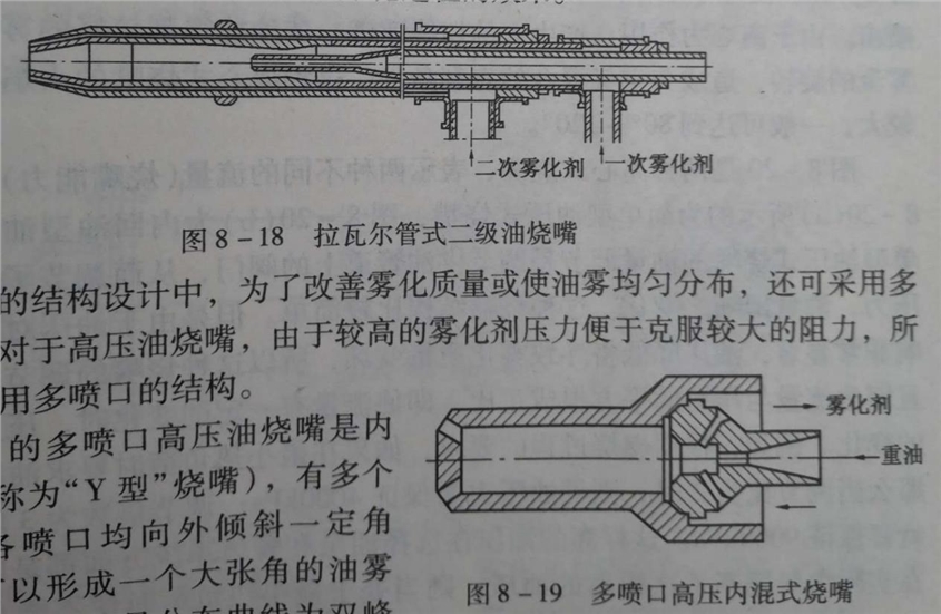 根据高压气体的流出原理,高压气体绝热膨胀后,温度降低,当它与油股相遇时,会使油的温度降低,从而油的黏度变大而使雾化质量变坏。因此,高压油烧嘴*采用温度较高的(可为200~300℃)过热蒸汽或压缩空气。