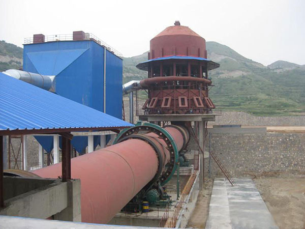 煅烧过程是物料从窑筒体的高端(窑尾部分)输入。由于筒体的倾斜和缓慢旋转,物料将产生一个即沿着圆周方向翻滚又沿着轴向移动的综合运动,不断地向窑筒体低端(窑头部分)输送。物料从窑头送入窑内进行燃烧,物料在流动过程中与高温气流相遇,不断加热完成物理化学反应。烧成的熟料从窑头部分排出,进入下一道工序。