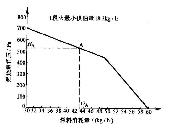 3)根据当量出力Q和设计参数下要求的燃烧器工作背压H,在燃烧器工作特性曲线上做出相交点A,垂直延长A点并与燃烧器工作特性曲线相交B点,即得燃烧器提供的工作背压H(见图 5)。