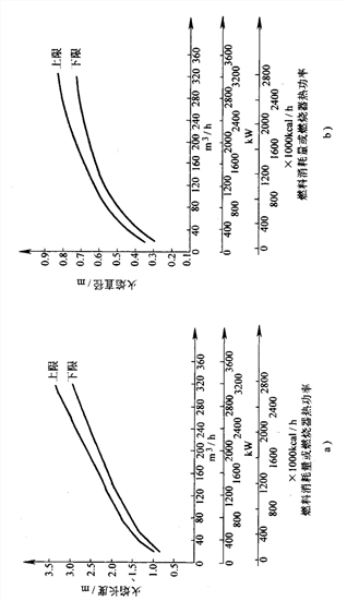 在没有燃料发热值的情况下选用燃烧器,可根据锅炉的出力折算成热功率进行确定。然而,每一种型号的燃烧器都有一个燃油或燃气消耗量范围,如果选用的燃烧器其燃油消耗量或燃气消耗量不能满足锅炉所需的燃料消耗量,此时就不能保证锅炉的出力。