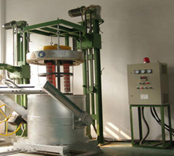 2、本装置采用立式结构,钢水罐盖竖向倾动启闭。驱动动力是由安装在地面的电动卷扬提供(或采用液压驱动),通过定滑轮、动滑轮组牵引倾动曲柄、转轴旋转带动大臂及连接在大臂上的罐盖倾动。