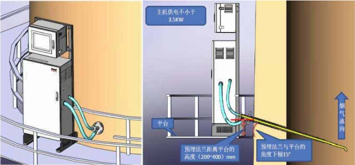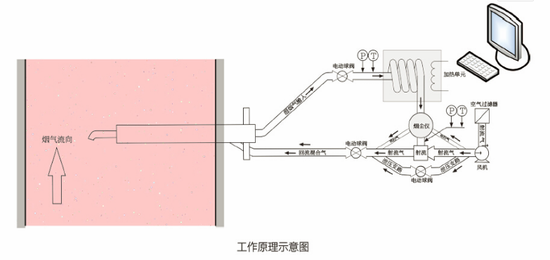 预处理模块尾气经采样探头重新返回烟道。所需射流气、吹扫气均由洁净风机单元产生,吹扫气 用于清洁烟尘仪的光学部件,确保系统长期可靠工作。