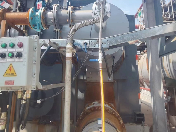 燃烧器配套就地点火箱,通过点火控制箱的按钮进行手动/自动操作。点火枪采用天然气或液化气作为燃料,点火时采用小火点大火方式,启动点火程序时首先点燃小火,待小火稳定燃烧后开启主燃气阀门,运行大火模式。点火箱包括点火控制器、点火变压器、火焰检测器。控制系统点火操作、远程反馈、运行状态显示、火焰检测、电磁阀驱动等功能。
